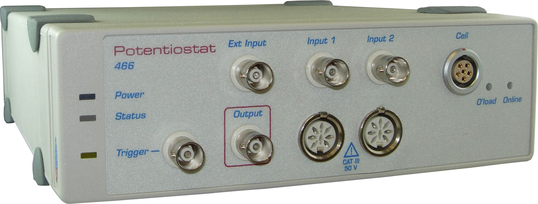 Four-channel potentiostat 10mA to 200pA range. Separate/common reference and auxiliary electrodes. BiPotentiostat. Ideal for amperometric biosensors, microbial fuel cells, photovoltaic materials and neurochemistry