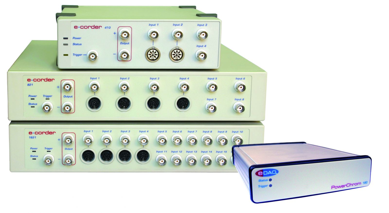 e-corder and Mini-corder units are used for the collection, display and analysis of signals from many types of laboratory instruments. They connect to Windows computers via USB and are supplied with Chart and Scope software. See their comparative specifications here. Request price information.